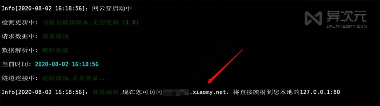 如果令牌没有错的话,网云穿客户端就会进行登录和连接,成功后输出以下的信息: