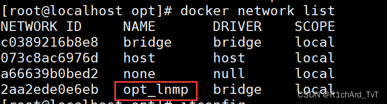 docker network rm opt_lnmp 实际如果只创建了一个网络,按tab键会自动补齐网络名