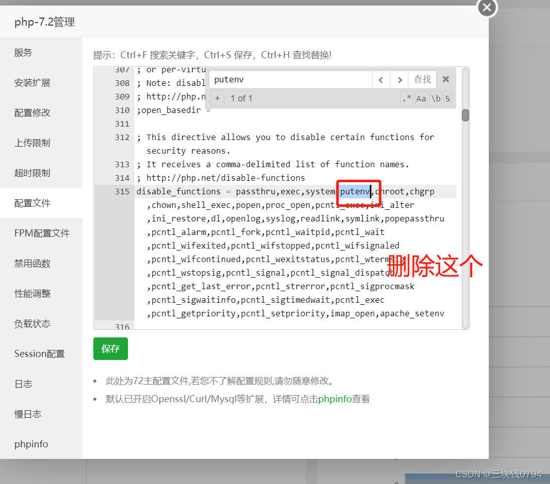 php7.2开启putenv() ,注意 如果安装了多个版本的php 其他版本的也要关了