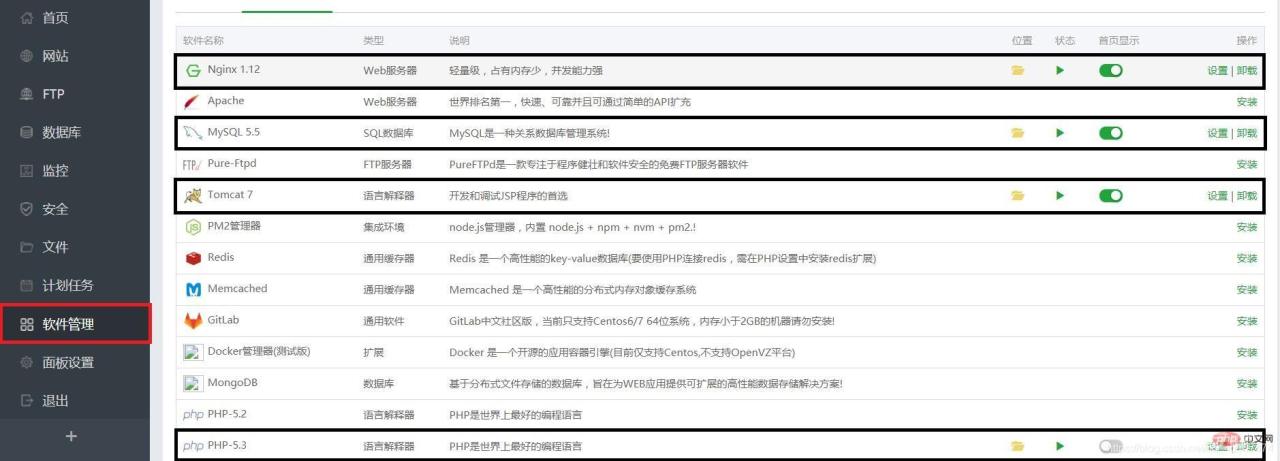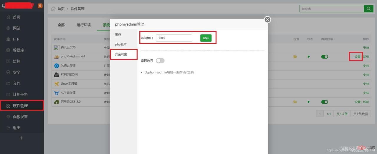 点击软件管理,打开phpMyadmin的设置,修改原端口号888为8088(这个别问,问我也不知道为什么)
