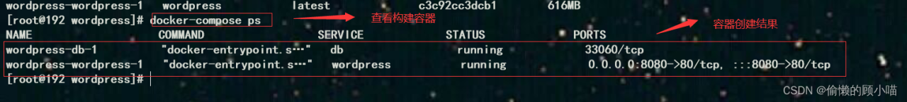 原文链接:https://blog.csdn.net/weixin_62816287/article/details/124924223?ops_request_misc=%257B%2522request%255Fid%2522%253A%2522168994567416800192286954%2522%252C%2522scm%2522%253A%252220140713.130102334.pc%255Fblog.%2522%257D&request_id=168994567416800192286954&biz_id=0&utm_medium=distribute.pc_search_result.none-task-blog-2~blog~first_rank_ecpm_v1~times_rank-4-124924223-null-null.268%5Ev1%5Ekoosearch&utm_term=docker%E3%80%81wordpress%E3%80%81wordpress%E5%BB%BA%E7%AB%99%E3%80%81wordpress%E4%B8%BB%E9%A2%98%E3%80%81%E5%AE%B9%E5%99%A8%E9%95%9C%E5%83%8F%E3%80%81