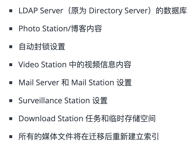 然后再将重要数据备份至其他存储介质中,以防意外发生。需要注意的是:下图中的数据通过这个方法,是无法迁移到新 NAS 中的,一定要做好心理预期。