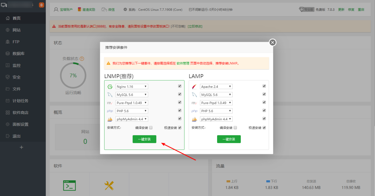宝塔面板安装完成后的一些默认位置