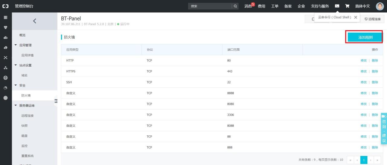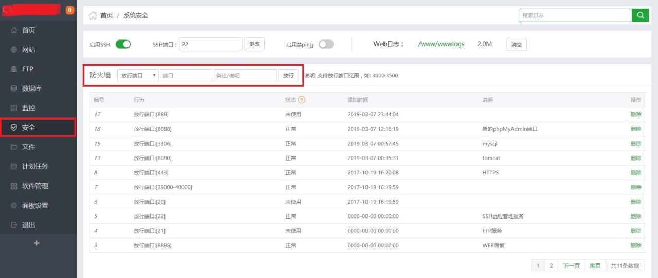 修改完端口号后记得在安全中放行8088端口号并且在防火墙(在管理控制台中)中开通此端口