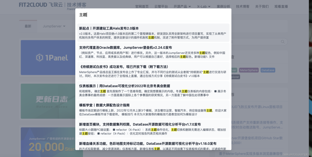 飞致云技术博客是FIT2CLOUD飞致云官方内容发布平台,提供包括飞致云旗下三款核心开源产品(JumpServer开源堡垒机、DataEase开源数据可视化分析平台和MeterSphere开源持续测试平台)、飞致云创始产品(CloudExplorer多云管理平台)、X-Lab孵化器产品(Halo开源建站工具、1Panel开源Linux面板等),以及公司新闻在内的官方博文汇总。