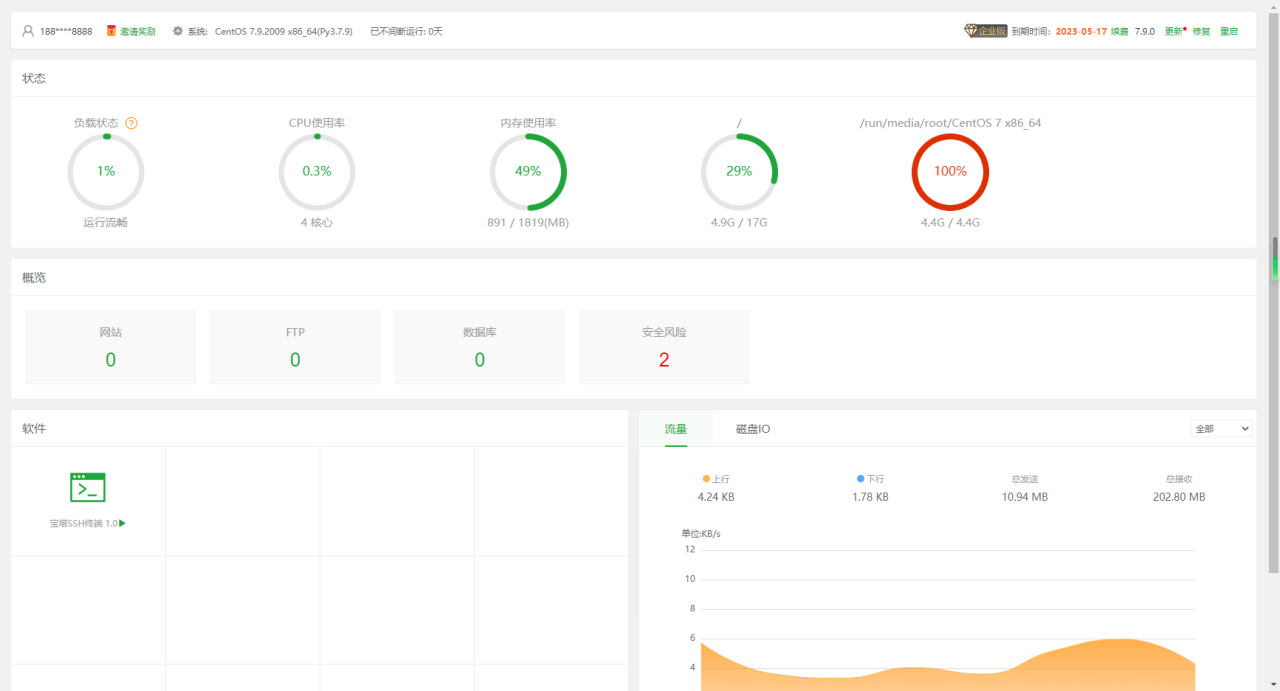 · 安全:剥离了所有与宝塔官方的通信、上报、下发;并且不与本站企业版服务器通信;