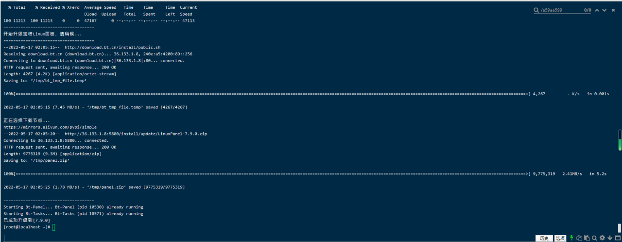 1.首先升级到官方最新版7.9版本,升级脚本(来源宝塔官方):