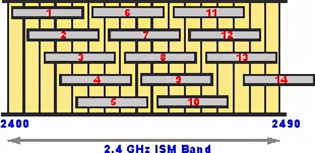 2.4G频谱及信道(第14信道在国内是不允许使用的)