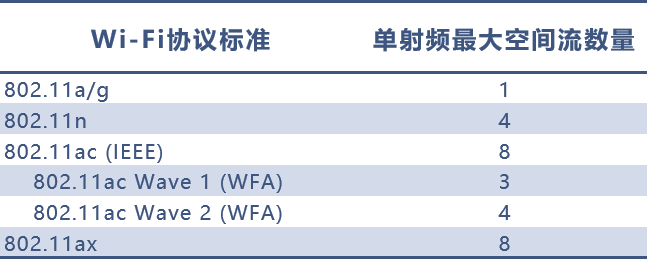 MIMO:也就是通过多根天线,在空间中能同时发送的数据流数。空间流数越多,速率越高。比如,4x4MIMO的理论速率是2×2 MIMO两倍,效果立竿见影。