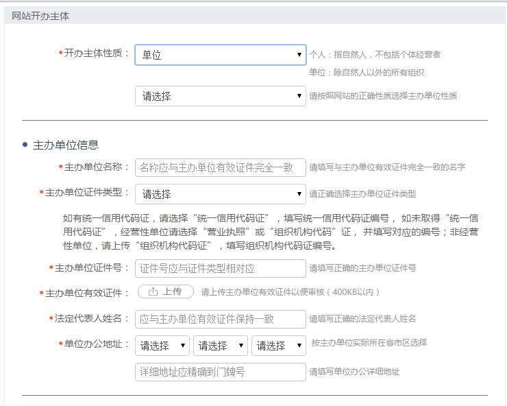 第二步:添加网站开办主体,选择个人或者单位