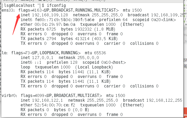 怎么查看自己的ip地址呢?简单。输入命令:ifconfig即可。( windows系统是ipconfig).。注意是ens33下的IP。