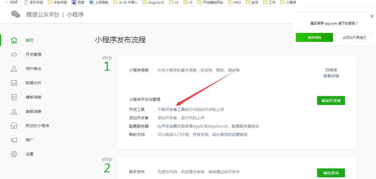 好了,我们完成注册之后登录就到了小程序开发页面,此时才真正到了搭建小程序运行环境的时候—_—!