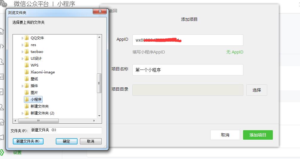 继续下一步,此处需要我们填写几个项目,首先是APPID,它可以在公众平台的基本配置中找到,然后是项目名称,接下来是项目目录,即项目存放地址,把这一切确定完之后,基本上就搭建完小程序的运用环境。