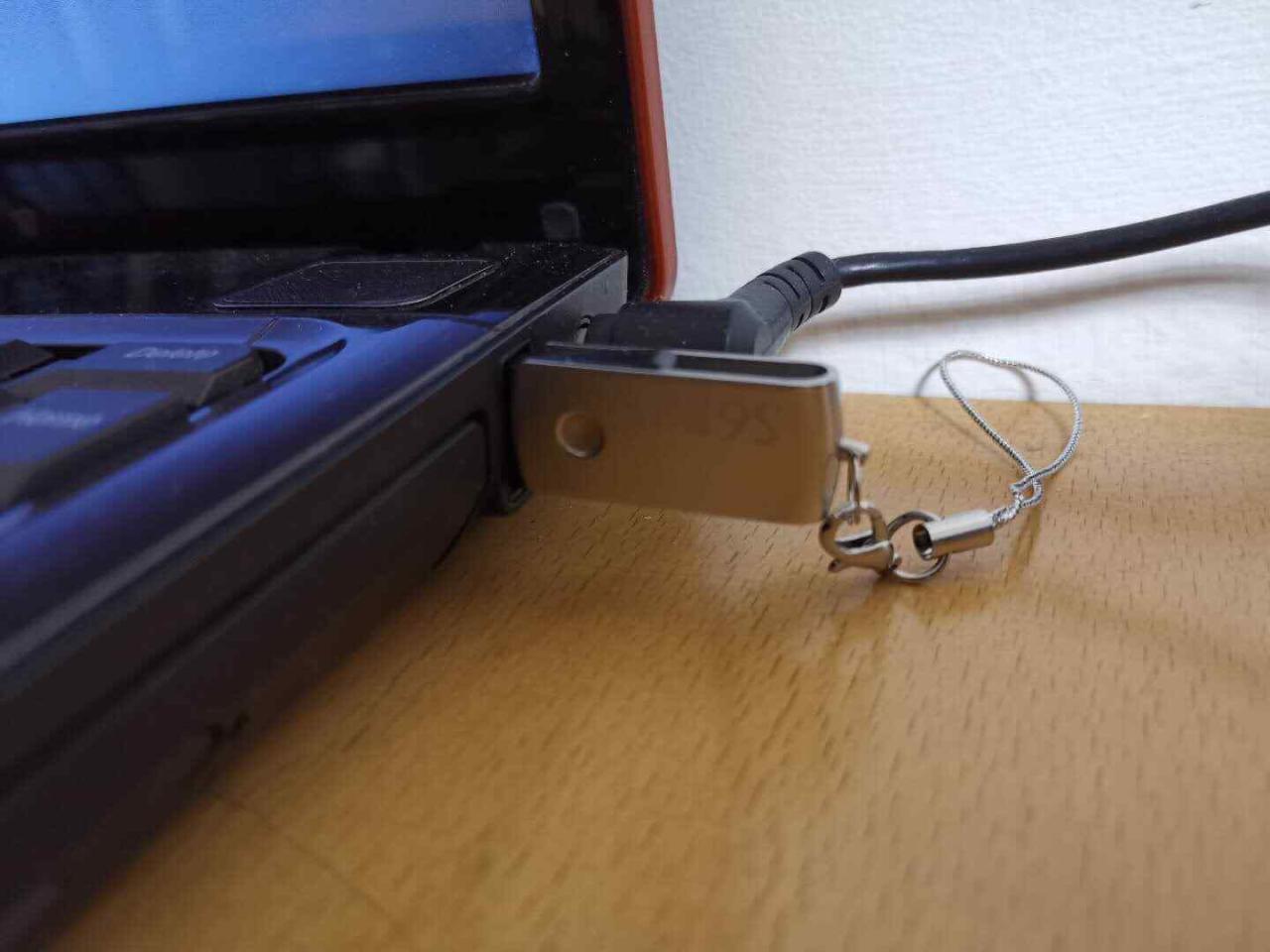 六,将制作好的U盘引导盘插入旧的联想Y450笔记本,最好找一个不容易被碰到的USB口,因为后面U盘会一直插在笔记本上: