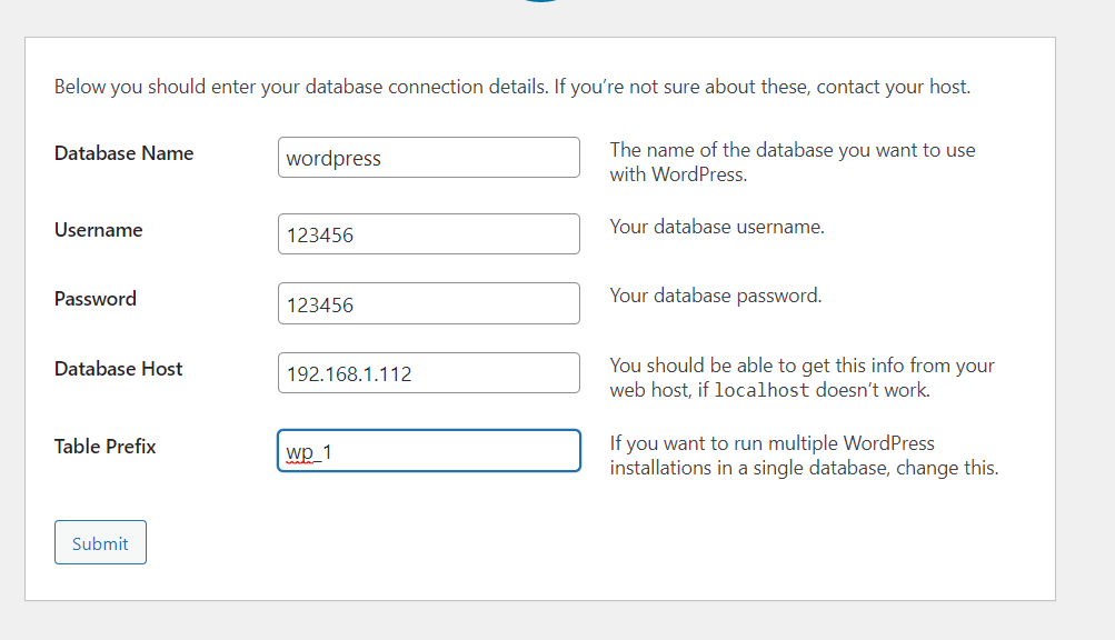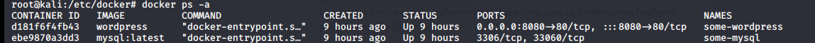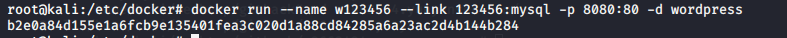 docker run --name w123456 --link w123456:mysql -p 8080:80 -d wordpress