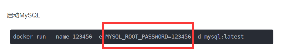 docker run --name 123456 -e MYSQL_ROOT_PASSWORD=123456 -d mysql:latest