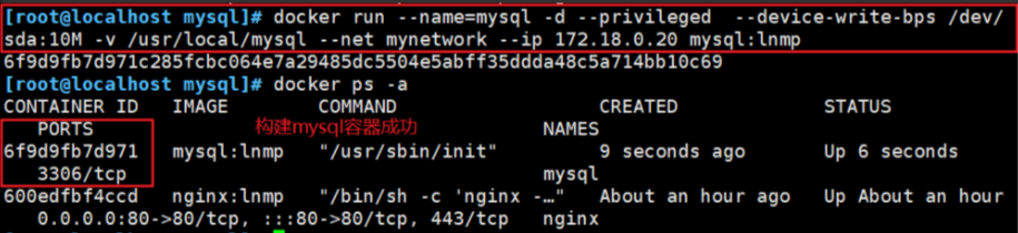 1.mkdir /opt/mysql cd /opt/mysql 把boost_1_59_0.tar.gz和mysql-5.7.17.tar.gz移动到本目录 2.vim Dockerfile FROM centos:7 MAINTAINER this is mysql image (gxd) RUN yum -y install gcc gcc-c++ ncurses ncurses-devel bison cmake make ADD mysql-5.7.17.tar.gz /opt/ ADD boost_1_59_0.tar.gz /usr/local/ WORKDIR /usr/local/ RUN mv boost_1_59_0 /usr/local/boost/ WORKDIR /opt/mysql-5.7.17/ RUN cmake \ -DCMAKE_INSTALL_PREFIX=/usr/local/mysql \ -DMYSQL_UNIX_ADDR=/usr/local/mysql/mysql.sock \ -DSYSCONFDIR=/etc \ -DSYSTEMD_PID_DIR=/usr/local/mysql \ -DDEFAULT_CHARSET=utf8 \ -DDEFAULT_COLLATION=utf8_general_ci \ -DWITH_EXTRA_CHARSETS=all \ -DWITH_INNOBASE_STORAGE_ENGINE=1 \ -DWITH_ARCHIVE_STORAGE_ENGINE=1 \ -DWITH_BLACKHOLE_STORAGE_ENGINE=1 \ -DWITH_PERFSCHEMA_STORAGE_ENGINE=1 \ -DMYSQL_DATADIR=/usr/local/mysql/data \ -DWITH_BOOST=/usr/local/boost \ -DWITH_SYSTEMD=1 && make -j4 && make install RUN useradd -M -s /sbin/nologin mysql ADD my.cnf /etc/ RUN chown -R mysql:mysql /usr/local/mysql/ RUN chown mysql:mysql /etc/my.cnf ENV PATH /usr/local/mysql/bin:/usr/local/mysql/lib:$PATH WORKDIR /usr/local/mysql/bin/ RUN ./mysqld \ --initialize-insecure \ --user=mysql \ --basedir=/usr/local/mysql \ --datadir=/usr/local/mysql/data RUN cp /usr/local/mysql/usr/lib/systemd/system/mysqld.service /usr/lib/systemd/system/ EXPOSE 3306 RUN systemctl enable mysqld VOLUME [ "/usr/local/mysql" ] #建立数据卷让mysql与php对接 CMD ["/usr/sbin/init"] 3.在当前目录创建mysql配置文件 vim my.cnf [client] port = 3306 default-character-set=utf8 socket = /usr/local/mysql/mysql.sock [mysql] port = 3306 default-character-set=utf8 socket = /usr/local/mysql/mysql.sock [mysqld] user = mysql basedir = /usr/local/mysql datadir = /usr/local/mysql/data port = 3306 character_set_server=utf8 pid-file = /usr/local/mysql/mysqld.pid socket = /usr/local/mysql/mysql.sock server-id = 1 sql_mode=NO_ENGINE_SUBSTITUTION,STRICT_TRANS_TABLES,NO_AUTO_CREATE_USER,NO_AUTO_VALUE_ON_ZERO,NO_ZERO_IN_DATE,NO_ZERO_DATE,ERROR_FOR_DIVISION_BY_ZERO,PIPES_AS_CONCAT,ANSI_QUOTES 4.创建新镜像 docker build -t mysql:lnmp . 5.启动容器,并进行初始化 docker run --name=mysql -d --privileged --device-write-bps /dev/sda:10M -v /usr/local/mysql --net mynetwork --ip 172.18.0.20 mysql:lnmp docker ps -a