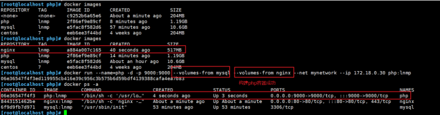 1.mkdir /opt/php cd /opt/php 上传 php-7.1.10.tar.bz2 到/opt/php目录中 2.vim Dockerfile FROM centos:7 MAINTAINER this is php image <wl> RUN yum -y install gd \ libjpeg libjpeg-devel \ libpng libpng-devel \ freetype freetype-devel \ libxml2 libxml2-devel \ zlib zlib-devel \ curl curl-devel \ openssl openssl-devel \ gcc gcc-c++ make pcre-devel RUN useradd -M -s /sbin/nologin nginx ADD php-7.1.10.tar.bz2 /usr/local/src/ WORKDIR /usr/local/src/php-7.1.10 RUN ./configure \ --prefix=/usr/local/php \ --with-mysql-sock=/usr/local/mysql/mysql.sock \ --with-mysqli \ --with-zlib \ --with-curl \ --with-gd \ --with-jpeg-dir \ --with-png-dir \ --with-freetype-dir \ --with-openssl \ --enable-fpm \ --enable-mbstring \ --enable-xml \ --enable-session \ --enable-ftp \ --enable-pdo \ --enable-tokenizer \ --enable-zip && make && make install ENV PATH /usr/local/php/bin:/usr/local/php/sbin:$PATH ADD php.ini /usr/local/php/lib/ ADD php-fpm.conf /usr/local/php/etc/ ADD www.conf /usr/local/php/etc/php-fpm.d/ EXPOSE 9000 CMD /usr/local/php/sbin/php-fpm -F 3.创建新镜像 docker build -t php:lnmp . 4.创建新容器 docker run --name=php -d -p 9000:9000 --volumes-from mysql --volumes-from nginx --net mynetwork --ip 172.18.0.30 php:lnmp
