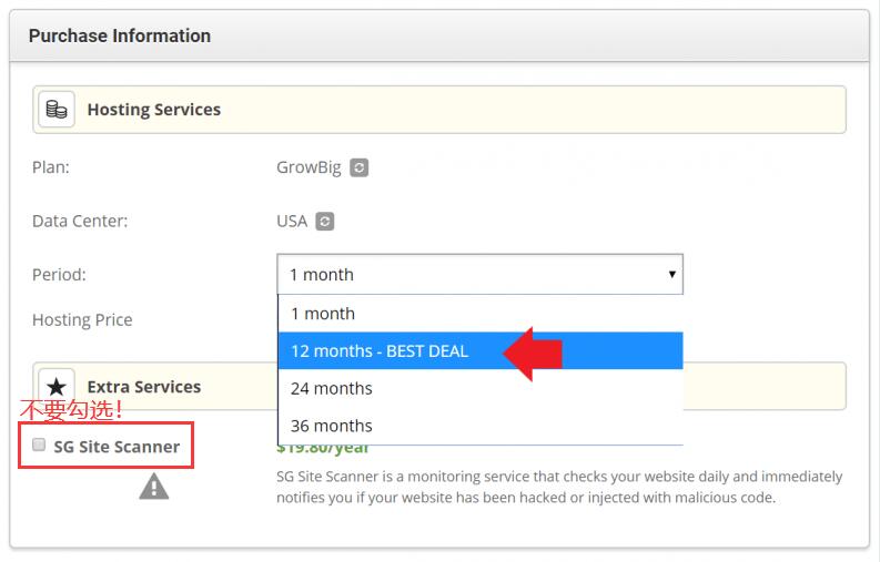 注意:不要勾选要收费的SG Site Scanner,它要额外收你接近20刀的费用。