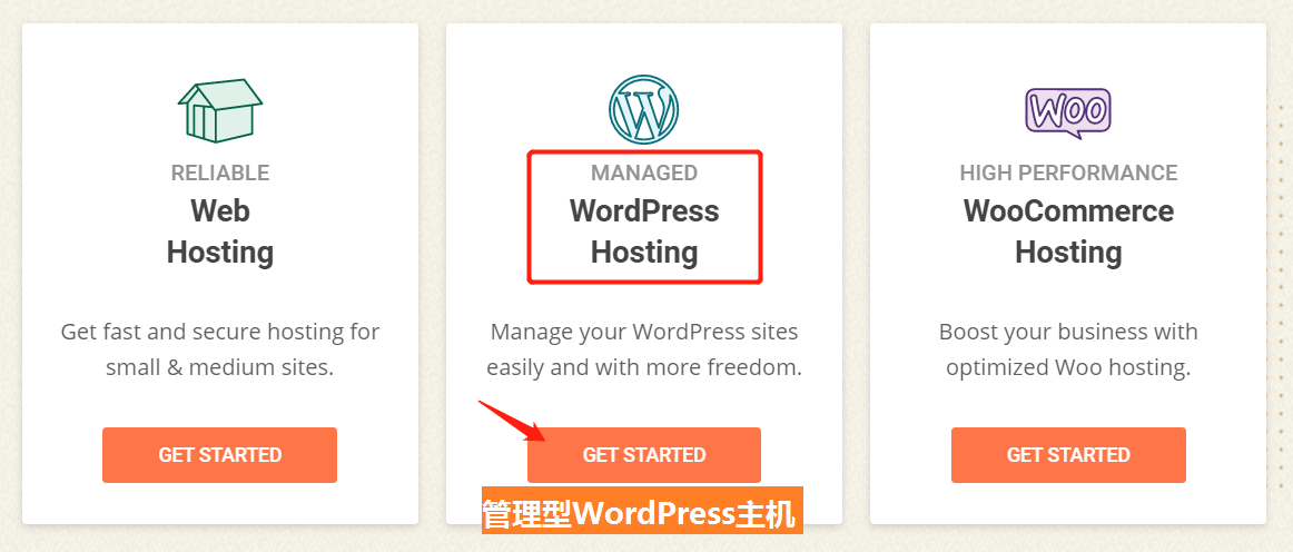 进入SiteGround主机页面,选择【Managed WordPress Hosting】,也就是管理型WordPress主机,这种主机专门为WordPress定制。