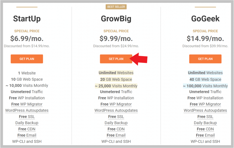 如果您刚刚接触WordPress,可以考虑Startup ($6.99/月);