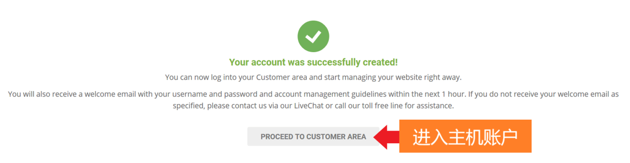在下图中,点击【Proceed to Customer Area】进入主机账户。