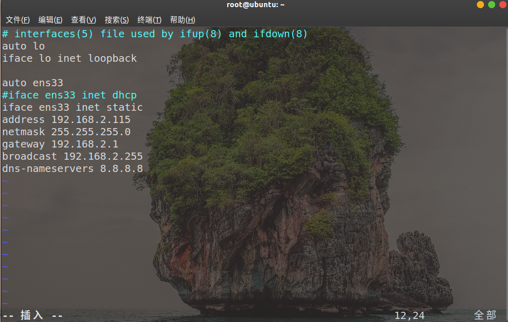 再使用命令:vi /etc/network/interfaces 添加