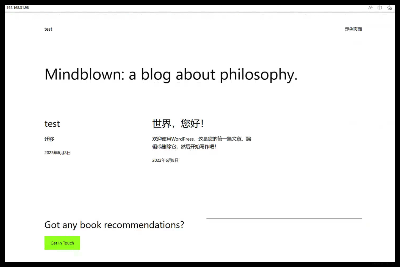 mysql> use wordpress; Reading table information for completion of table and column names You can turn off this feature to get a quicker startup with -A Database changed mysql> select * from wp_options limit 1; +-----------+-------------+-----------------------+----------+ | option_id | option_name | option_value | autoload | +-----------+-------------+-----------------------+----------+ | 1 | siteurl | http://192.168.31.143 | yes | +-----------+-------------+-----------------------+----------+ 1 row in set (0.00 sec)