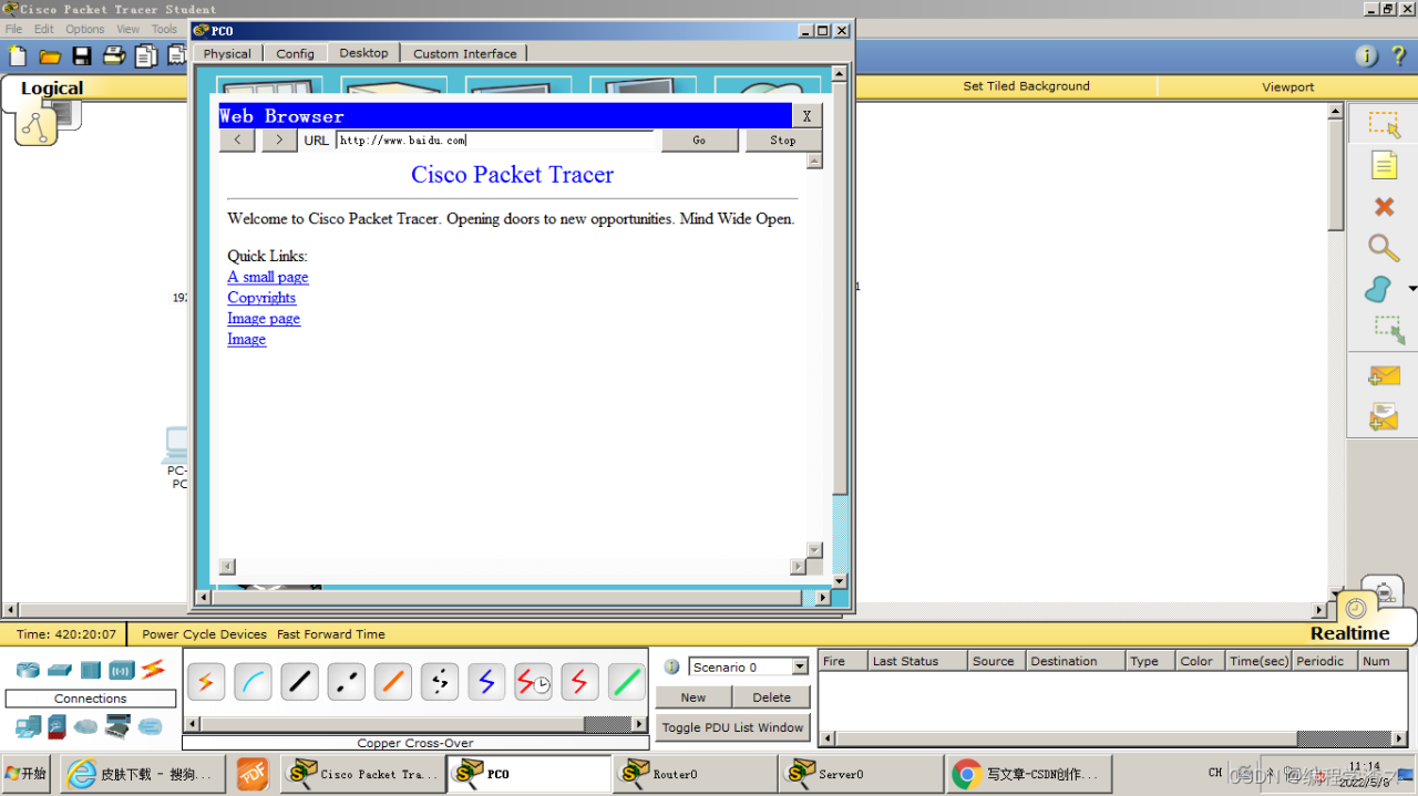 我们使用到了一台路由器,两台服务器,一台pc机,因为我们需要使用一台pc机来通过第一台服务器访问第二台,就是在第一台进行域名查找,然后返回给pc机一个具体的IP就可以实现访问第二台服务器了;