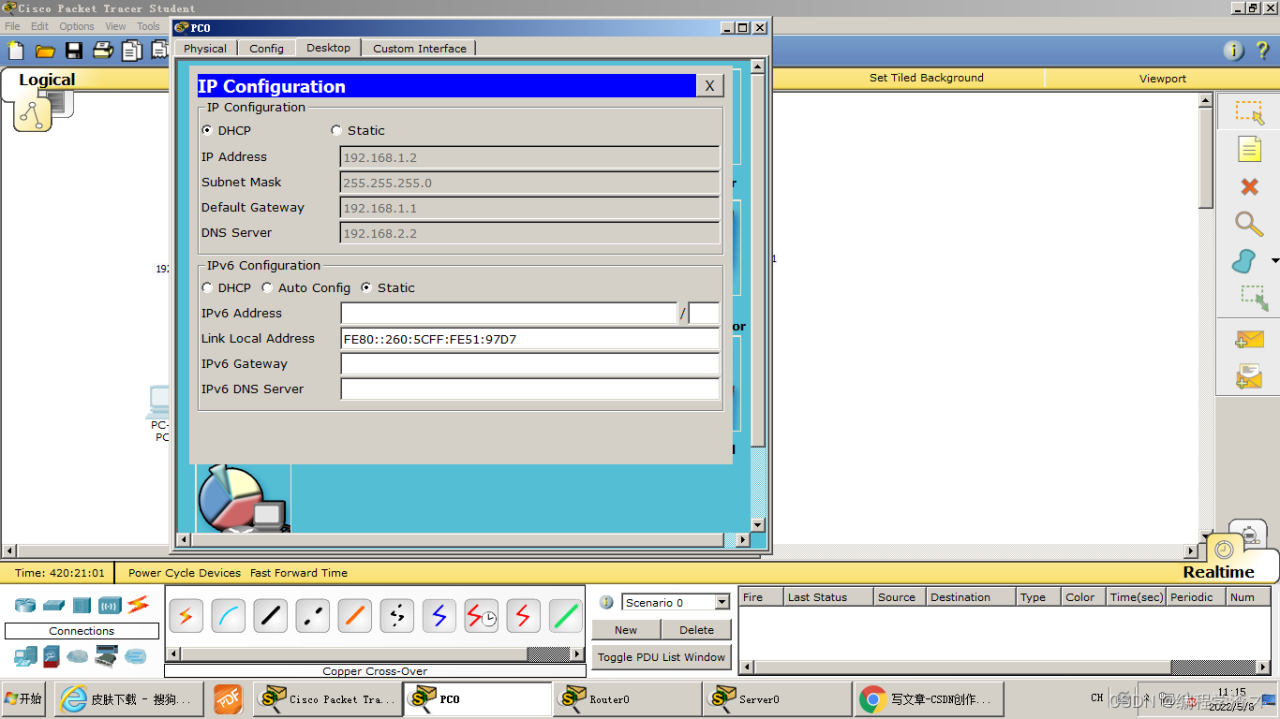 点击设备,点击第三个,点击第一个,点击DHCP可以看到我这里满满当当的都是ip和子网掩码;