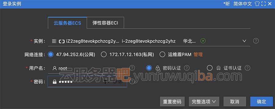 云服务器Linux系统默认用户名为root,输入密码,点确定,即可登录。