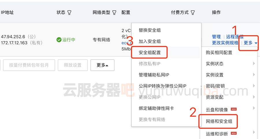 2、找到“更多”–“网路和安全组”–“安全组配置”,如下图:
