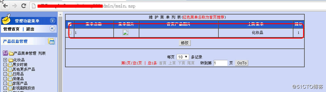 如图3所示,回到菜单管理中,可以看到在化妆品菜单中成功新建一条记录。