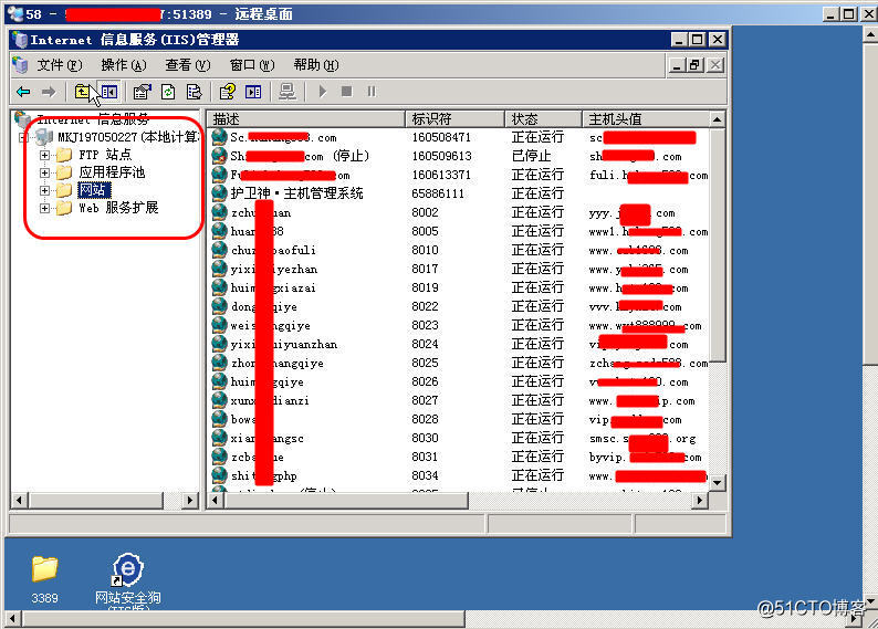再次登录该服务器的远程桌面,如图12所示,成功登录服务器,在该服务器上可以看到N多网站。