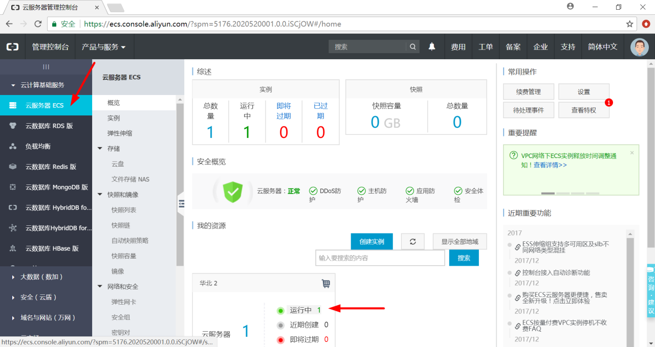 第一步:打开阿里云服务器管理控制台页面,点击“控制台”按钮