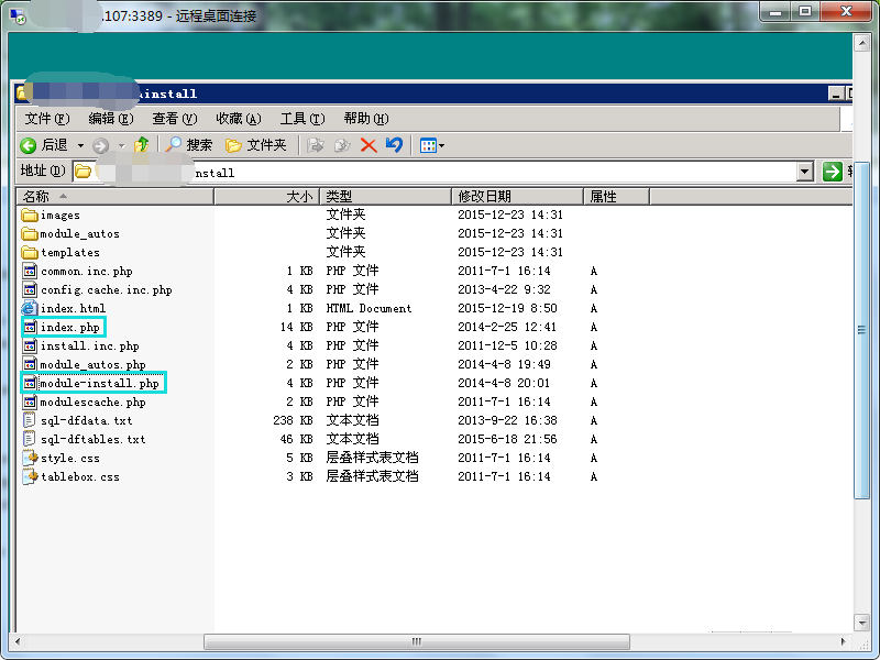 接着我们修改锁定文件(install文件下的index.php.bak和module-install.php.bak文件),去除它们的后缀名.bak。