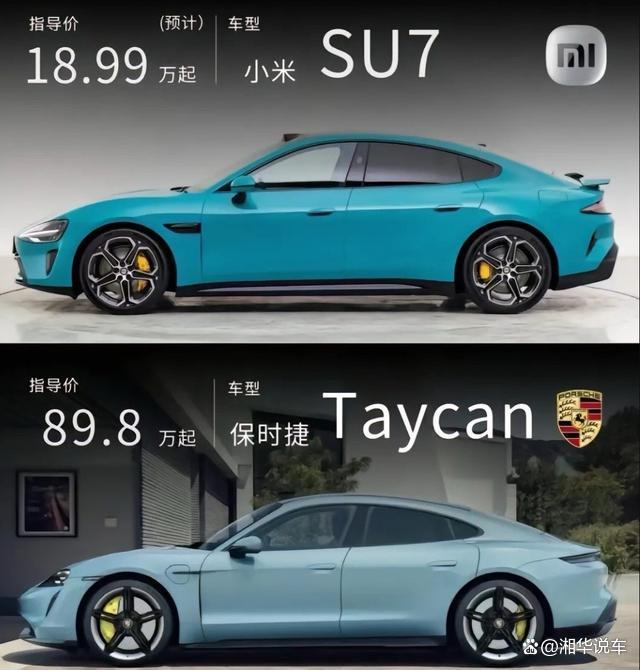 除了价格以外,小米SU7的外观其实也是槽点之一,外观确实好看,而且也受到了不少人的追捧,但是大家仔细拿着小米SU7的车身侧面和保时捷的TAYCAN对比下,就会发现,这似乎像是众泰皮尺部的作品,当然小米和众泰在网上的待遇完全不一样,不过小米这也算是给大家圆了豪车梦,应该是致敬保时捷吧。