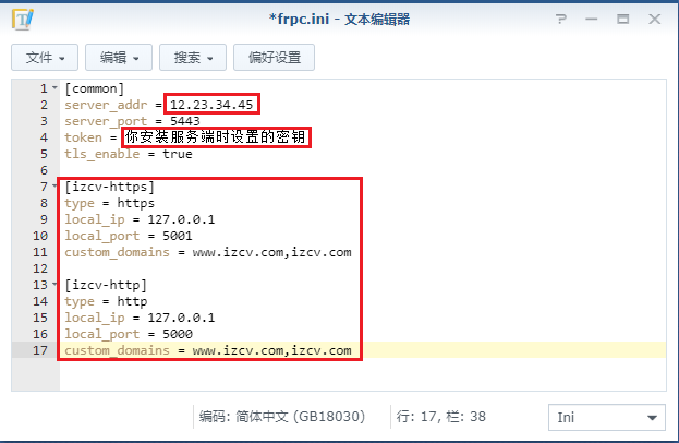 通过以上所有的准备工作之后,我们就可以在群晖中设置frpc客户端啦。由于我们服务端安装的是frp v0.28.2版本,所以客户端也需要同样的版本。