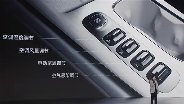 为了减少全虚拟按键带来的不方便,雷军坚持为小米SU7保留了物理按键设计,主要用来控制空调温度、风量、尾翼、空悬等。