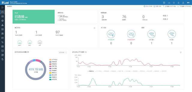 这款IK-Q1800企业级路由是爱快公司今年刚推出的新品,主打功能就是支持更快的WIFI6通讯、联机更加稳定、深度满足企业至上而下的网络管理、监控模式。