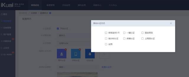 爱快IK-Q1800支持微信连Wi-Fi、手机认证、用户认证、钉钉认证等10种认证方式。企业内的员工可以绑定企业团队,之后团队中的每个人都可以直接通过钉钉App/微信APP联网,无需记忆和输入密码。