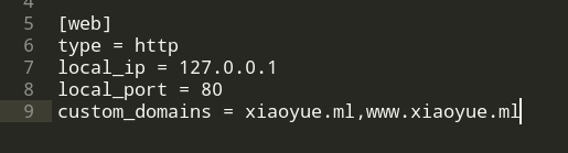 对应穿透服务配置里配置好对应域名,custom_domains = xiaoyue.ml