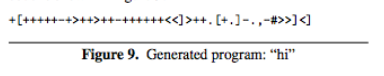 一开始,研究人员让AI Programmer生成了一个非常简单的程序来输出“hi”。经过5700代后,测试成功。生成代码如图9所示。