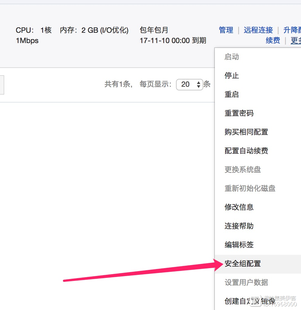 进入服务器(实例)主页,点击右边的查看更多,点击安全组配置。
