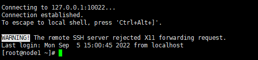 # windows客户端登录linux 测试 127.0.0.1 10022 正常就可以登录到linux节点