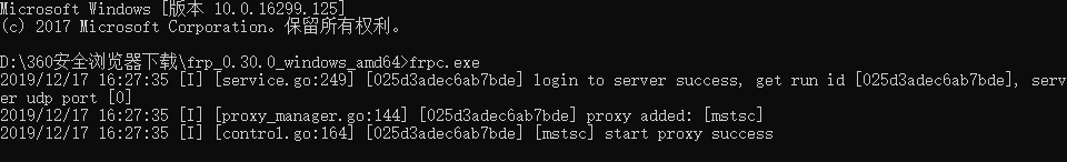 这里的 frpc.exe 和 frpc.ini 的地址不要搞错了