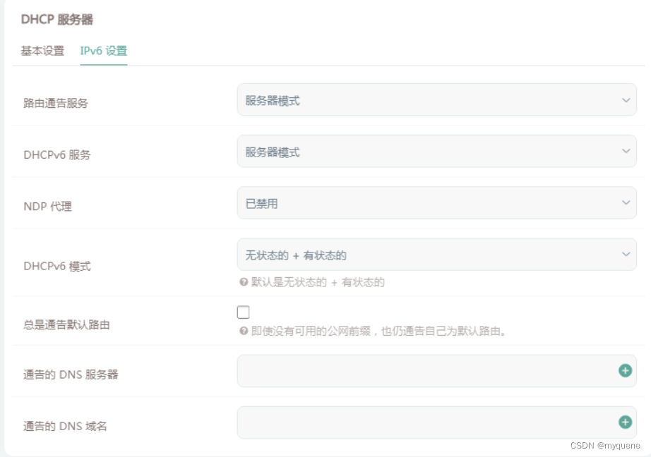 在“DHCP 服务器”-“IPv6 设置”可按如下设置