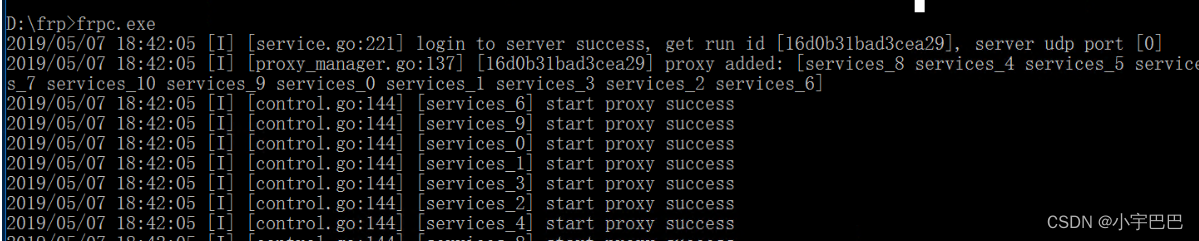 2.按下windows+R输入cmd进入命令窗口,进入到frp解压目录下运行frpc.exe.