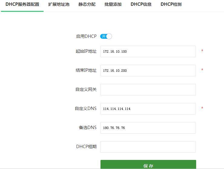 (二)确认出口路由器的配置同时做好地址规划。以VEC18G为例,要确认内网配置的IP地址和DHCP服务器是否开启以及地址池的设置情况。