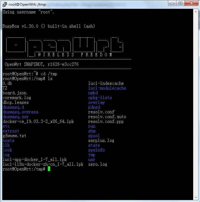 利用opkg install xxx.ipk安装我们上传到/TMP文件下的ipk